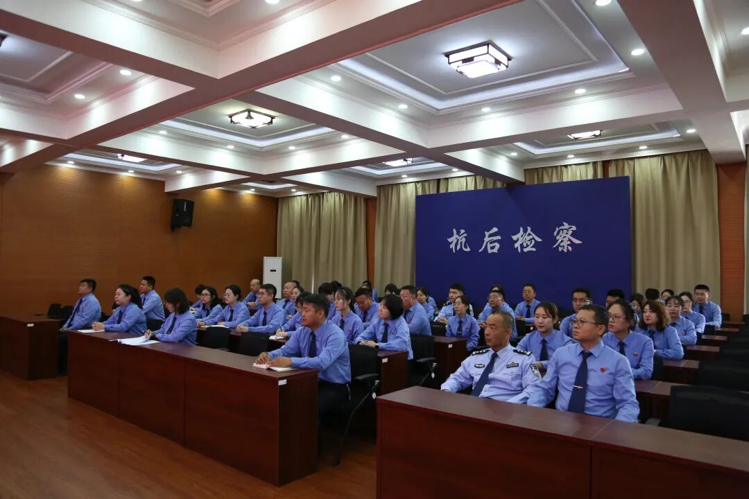 在2025年国庆、中秋双节来临之际,杭锦后旗人民检察院组织召开节前警示教育大会,党组书记、检察长雷介逸,班子成员及全体检察人员参加会议,党组副书记、副检察长刘敏主持会议。