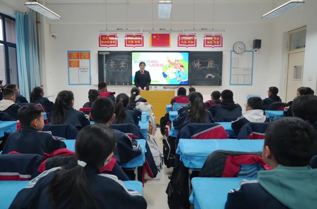 近日,杭锦后旗人民检察院法治副校长聂艳团队走进晨丰中学,以“拒绝打架斗殴,守护青春底色”为主题,为同学们带来一场别开生面的未成年人法治安全教育班会课,从多个方面讲述了打架斗殴的危害。