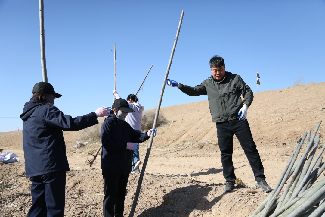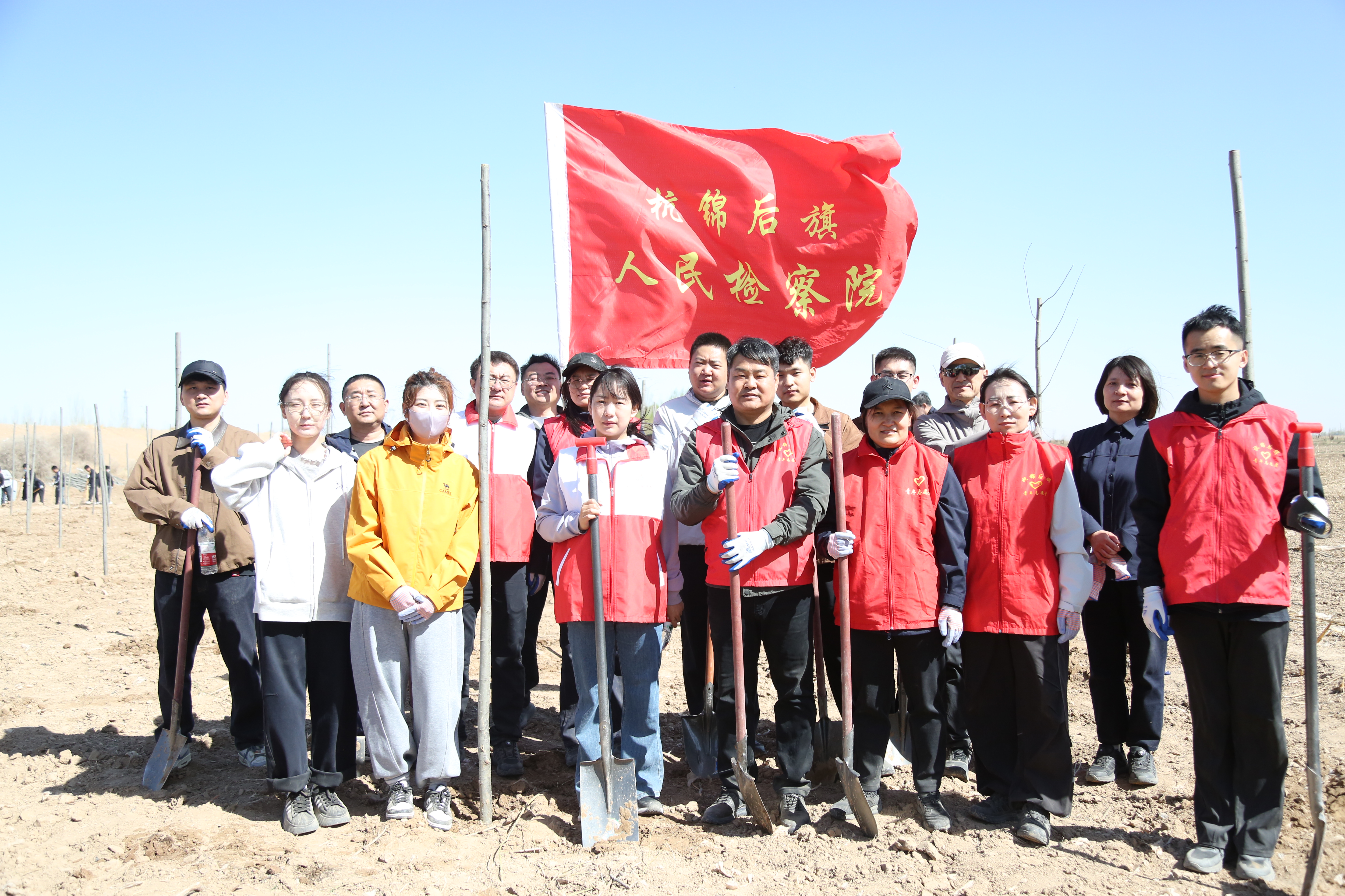 大家挥锹铲土、扶苗固本、提水浇灌……200余株新疆杨在春风中挺立,形成一道“检察护绿”的生态屏障。检察人员将“守护绿水青山”的誓言化作实际行动,让“检察蓝”与“生态绿”在黄河之畔交相辉映。